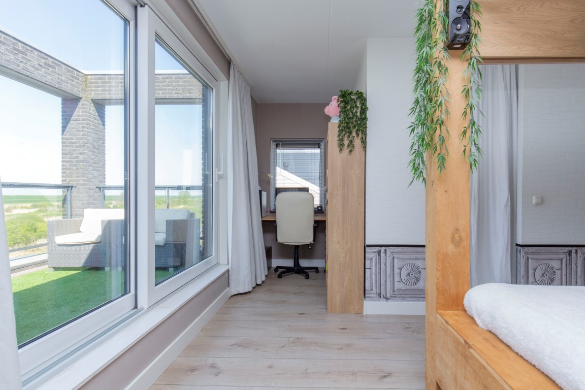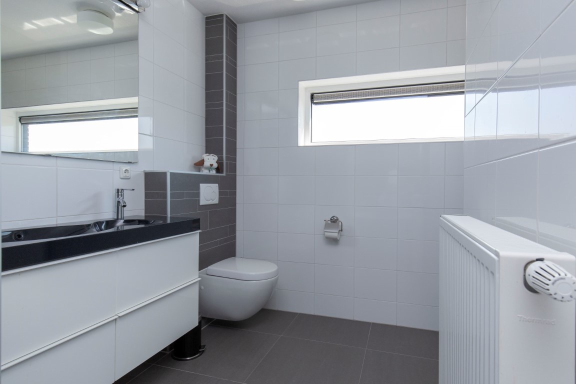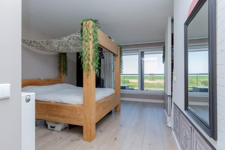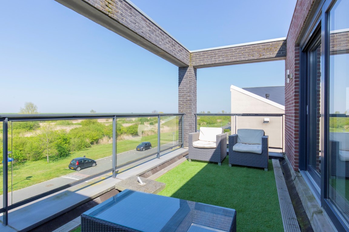 2e verdieping: grote ouderslaapkamer voorzien van inloopkast, eigen badkamer met dubbele wastafel, vrijhangend toilet, een (extra groot en diep) ligbad met douchegelegenheid en tegelwerk tot plafondhoogte. De slaapkamer is voorzien van airco. Tevens is er ruimte voor een werkplek. Aan de voorzijde is middels een schuifpui het royale dakterras te bereiken. U heeft hier fantastisch vrij uitzicht op het natuurgebied, de Oostvaardersdijk en het Markermeer. Echt een unieke locatie om te bewonderen.
